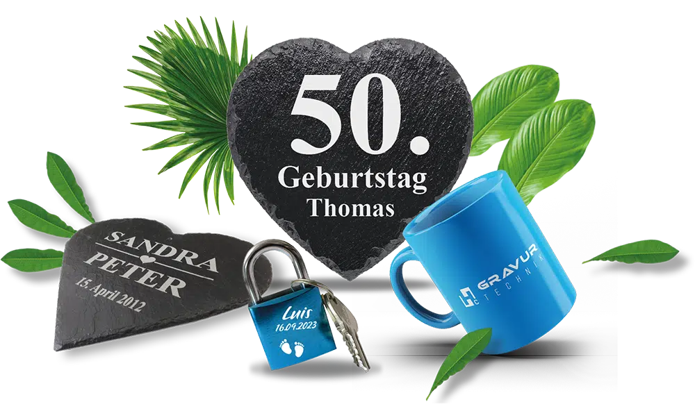 Gerne kannst du bei uns deine personalisierten Gravuren realisieren. Sei es auf Schieferplatten, Tassen, Thermobecher uvm.